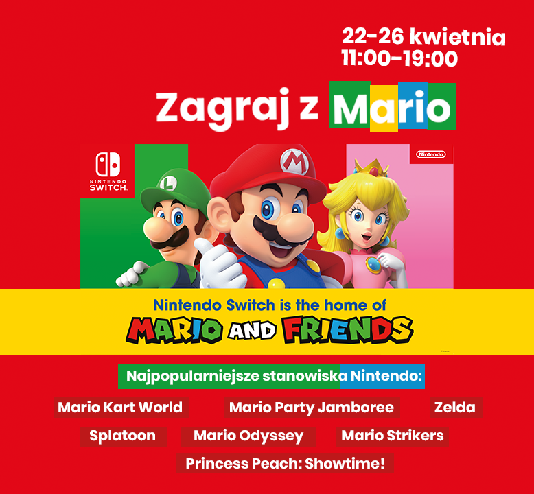 Drodzy Klienci, W dniach 22–26 kwietnia zapraszamy do Galerii Leszno na wyjątkowe wydarzenie dla fanów gier Nintendo. Na miejscu czeka strefa pełna emocji i najpopularniejszych tytułów, […]