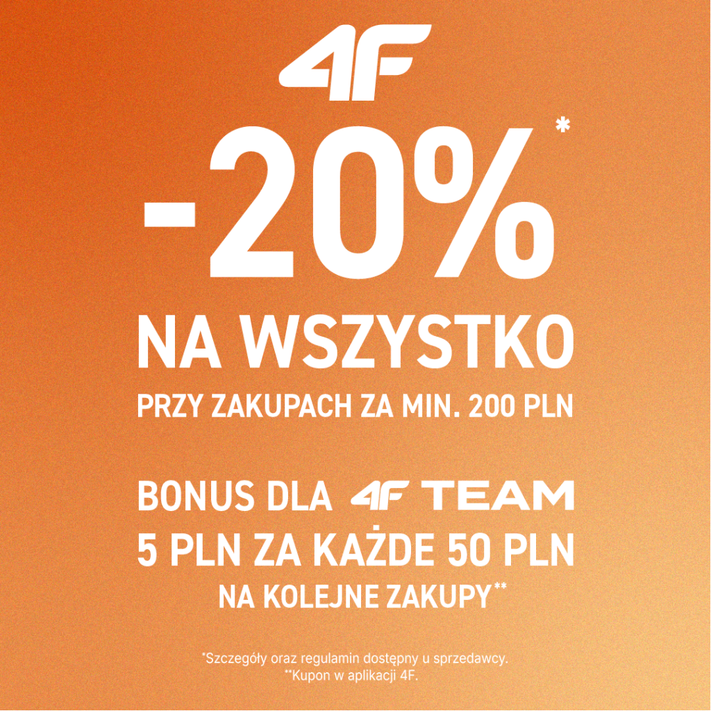 JESTEŚ W 4F TEAM? MASZ EKSTRA:5 PLN** ZA KAŻDE WYDANE 50 PLN NA KOLEJNE ZAKUPY