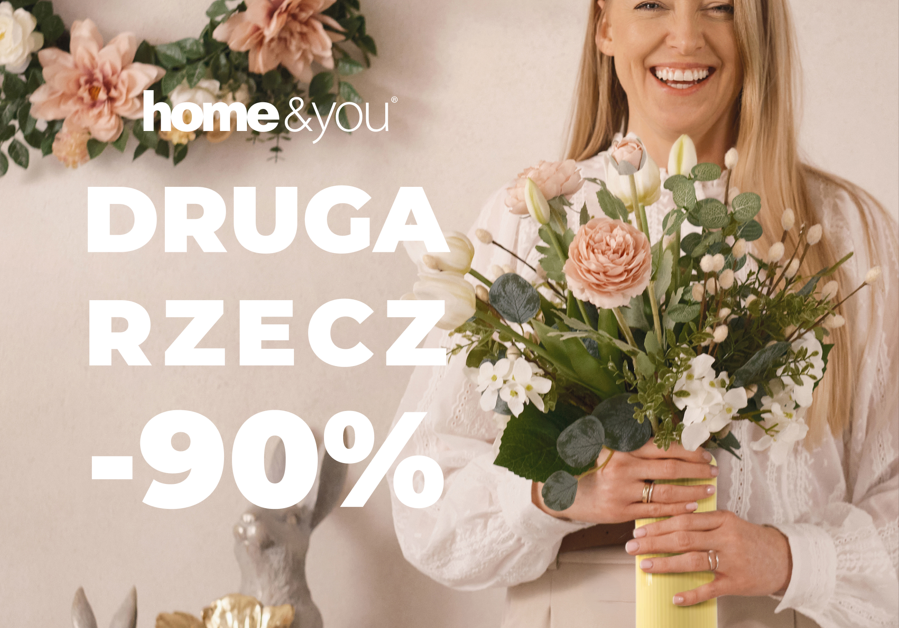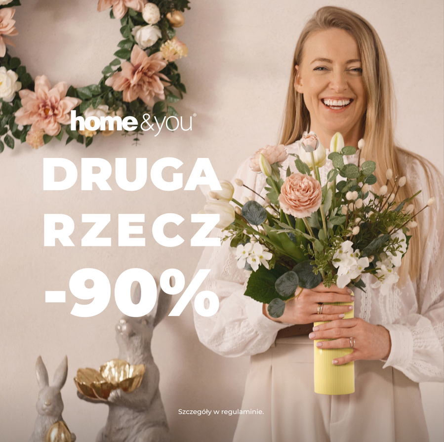 Prezent dla Niej, a może dla siebie? W sklepach home&you trwa promocja druga rzecz -90%, bo każda z nas zasługuje na coś pięknego. Szczegóły w regulaminie i na home-you.com.